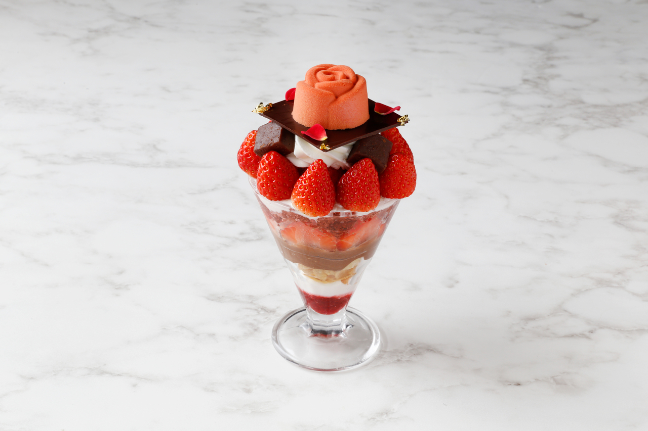 【ドリンクセット】ローズパフェ ~苺とチョコレート~