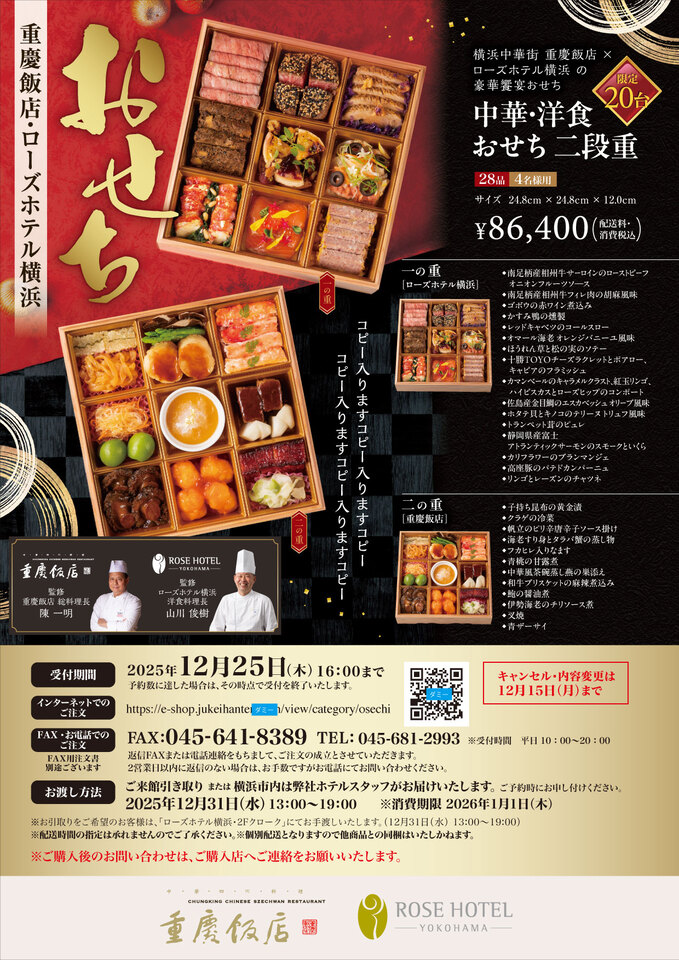 限定20台 重慶飯店・ローズホテル横浜 中華/洋食おせち二段重(4名様用)