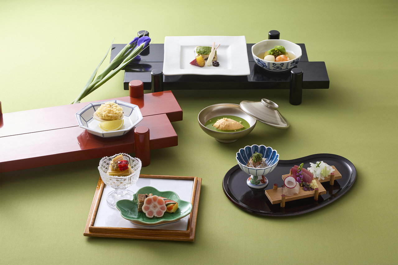 茄子やエンドウマメ、鰹や蛤など山海の食材を楽しめる