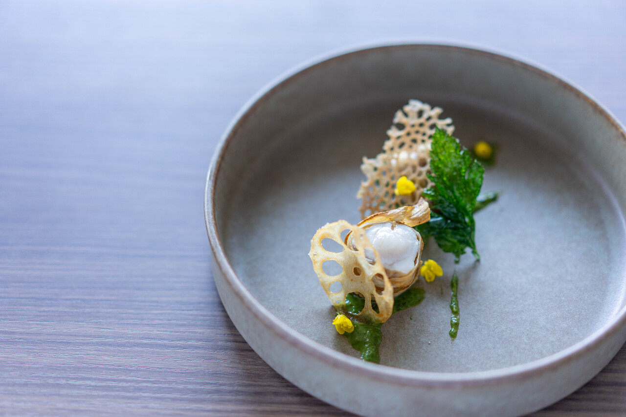 メニュー内容は「走り、旬、名残り」にこだわって全国から取り寄せた選りすぐりの食材は、国産ブランド牛や近海の新鮮な魚介類ほか産地自慢の味ばかり。それらを薪焼きや発酵料理など様々な技法で旬の味を最大限に引き出してご提供いたします。ご要望により、ヴィーガンメニュー、ベジタリアンメニューもご用意可能です。