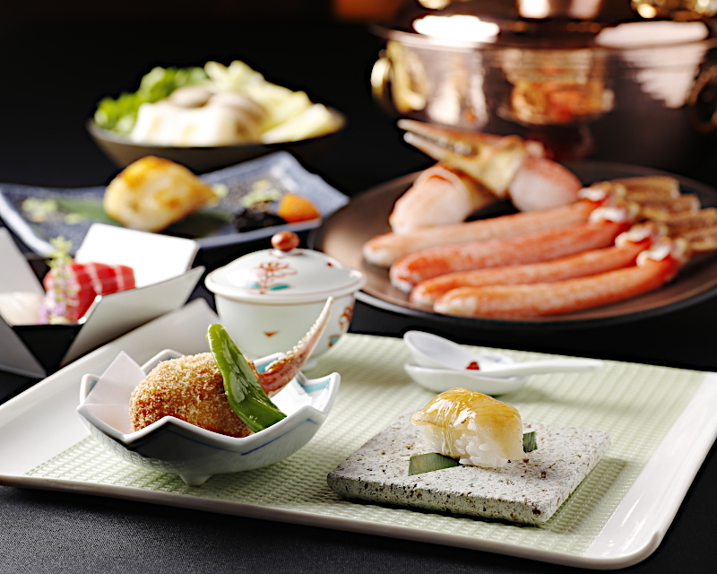 ・小鉢・どびん蒸し・お造り・煮物・焼物・揚物・味ご飯・味噌汁・香物・デザート