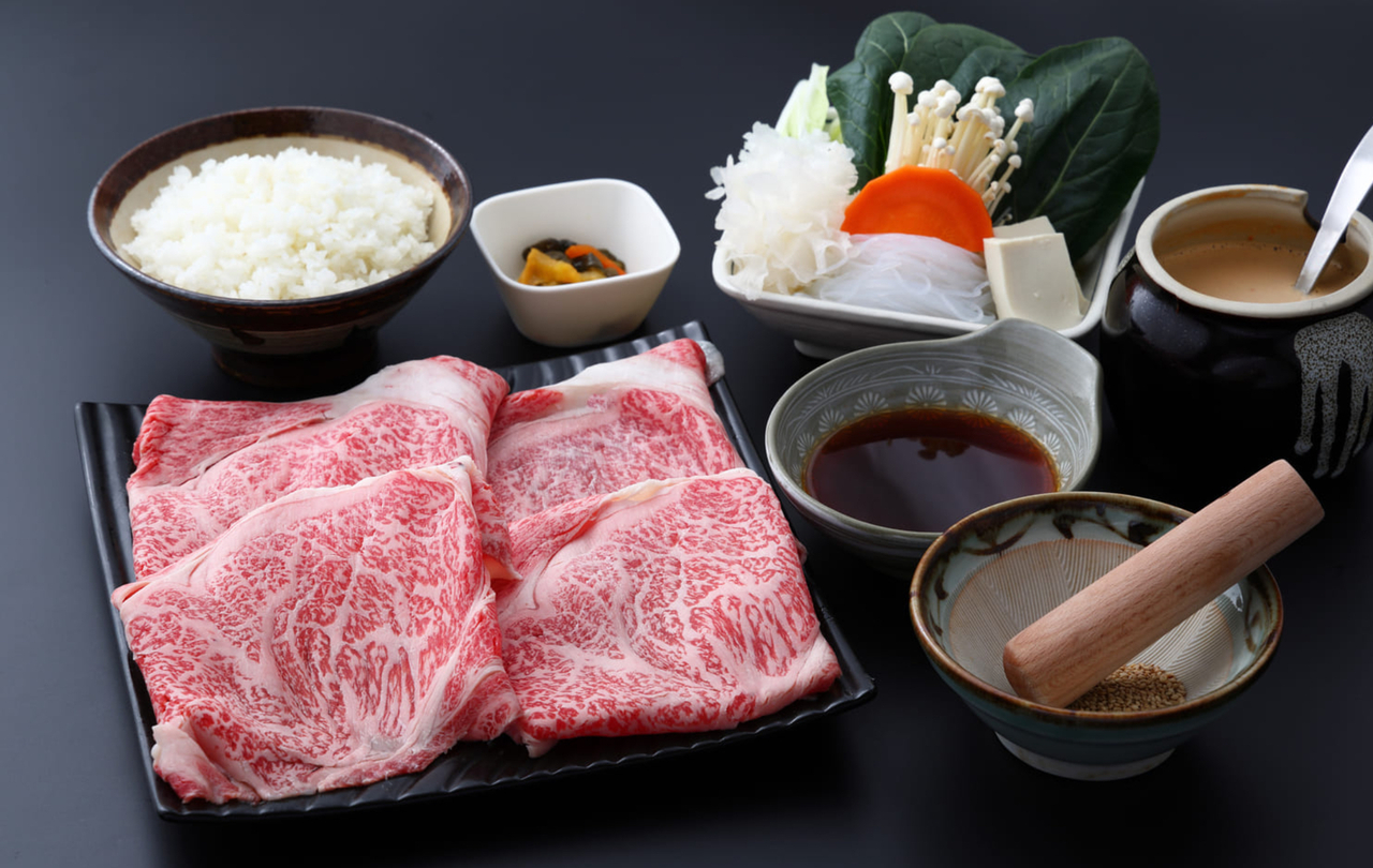 松阪牛もも肉150gを贅沢に味わえる、極上ランチしゃぶしゃぶセットをランチタイム限定の特別価格でご提供いたします。