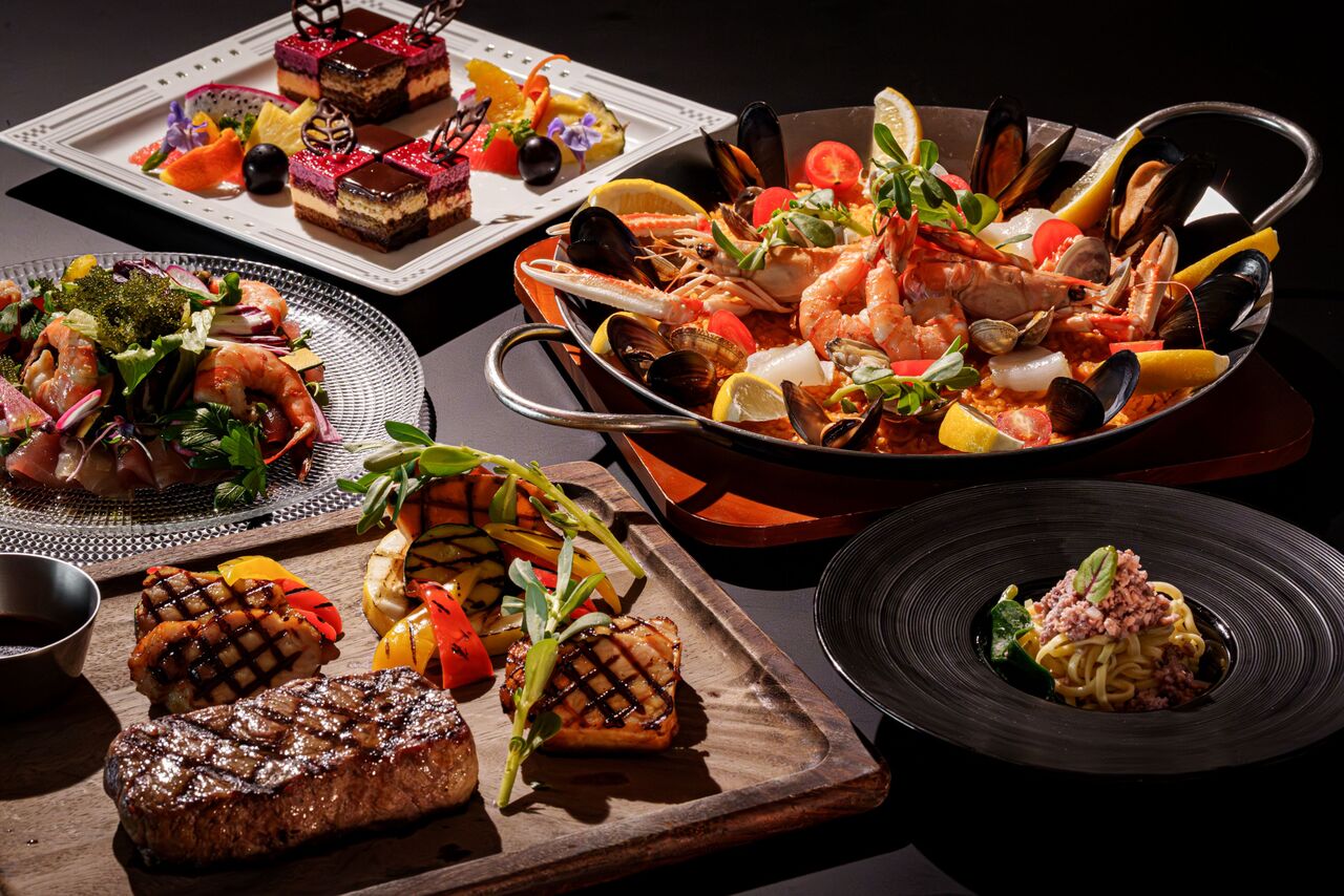 島野菜×シーフードの色鮮やかな前菜に、人気の“極みパエリア”、