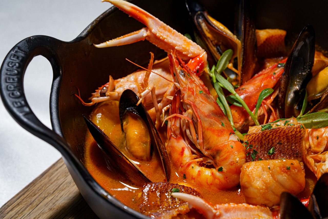 島野菜×シーフードの色鮮やかな前菜に、人気の“極みパエリア”、