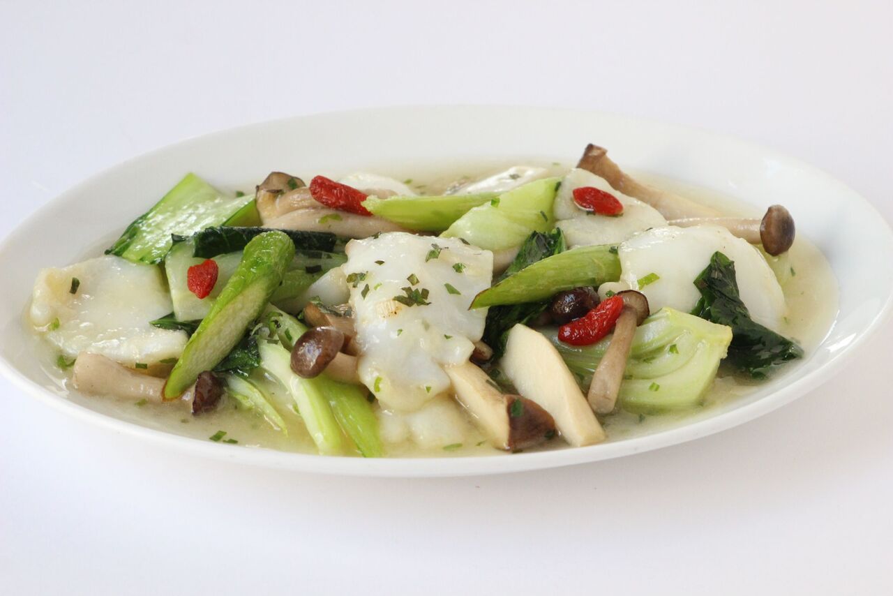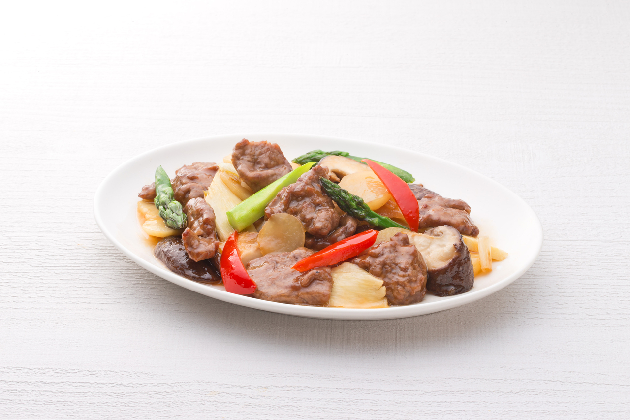 四川省で愛されている鶏肉の炒めを県産地鶏「富嶽白鶏」で仕上げました。芽菜(ヤーツァイ)の独特な味わいをサンチュに包んでお召し上がりください。