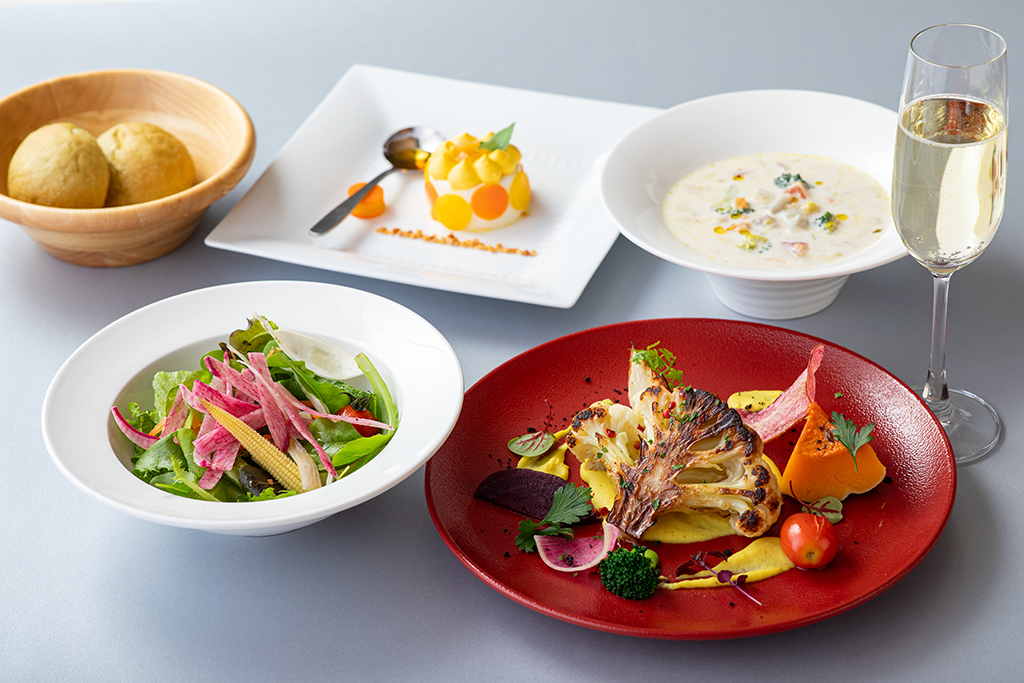 【土・日・祝日 オンライン限定!乾杯スパークリングワイン付き】ホリデーベジフルコース[ランチコース・全4品]についての質問