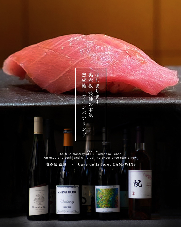 【ワインソムリエ ANNA × 奥赤坂 鮨 淡師】鮨OMAKASE+厳選ワイン5種ペアリングコース