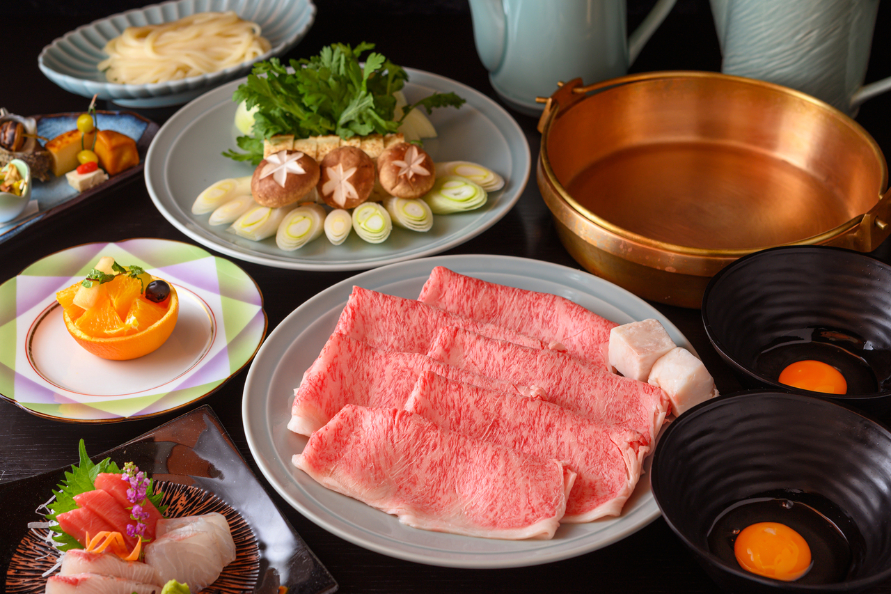 すき焼き又はしゃぶしゃぶをご予約時にお選びくださいませ。