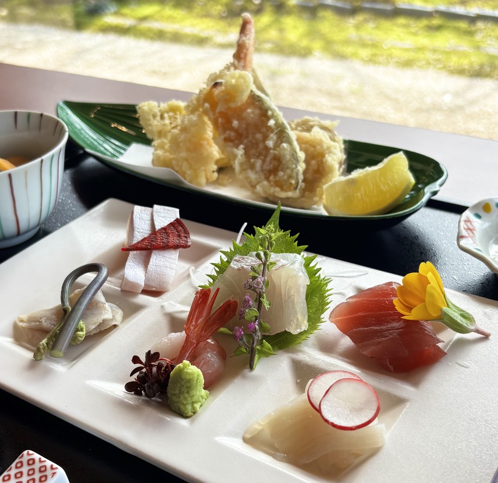 天麩羅と日本海の新鮮な魚介類をお刺身で味わう