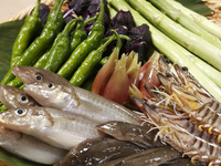 活海老[2] 魚介[3] 野菜[4] お食事(穴子を天丼にする事もできます)香の物 赤出し アイスクリーム