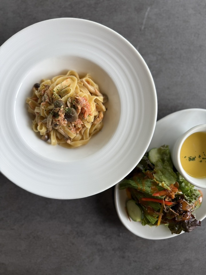 旬の食材を使用した、ヒルズのパスタランチ。