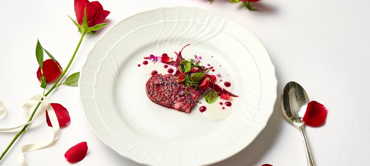輝きを纏う前菜「キャヴィア ロイヤル クリスタルの小さなクロスタータ」は、寒鰤のタルタラと白人参のピュレがキャビアと織り成す、まろやかで奥行きのある味わいが印象的。ノドグロのインパデッラや奈良県産みわ牛のアッロストなど、素材の個性を極限まで引き出した珠玉の一皿が彩る、光に満ちた冬の饗宴をご堪能ください。