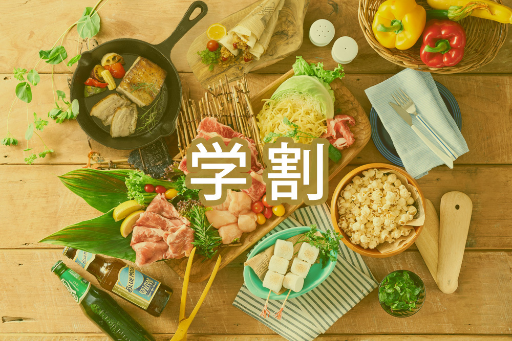 ※包丁・まな板は施設内で利用禁止となりますので、カット済・すぐ焼ける状態の食材を購入頂き、お持ち込みとなります。