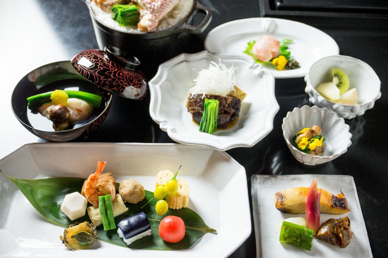 季節の移ろいを表現した懐石料理。旬の食材が豊富に盛り込まれている、料理長おまかせ特選コースです。伝統息づく日本料理の技法を大切に、新しい試みを取り入れた内容です。