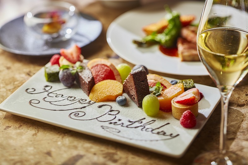 お誕生日などお祝いでのご利用の場合、デザートにチョコペンで簡単なメッセージをご用意いたします。20字以内でご指定ください。