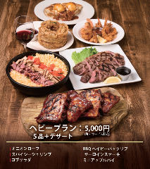 【飲み放題付】ベイビーバックリブやステーキなど満足感を堪能できる!【ヘビープラン】