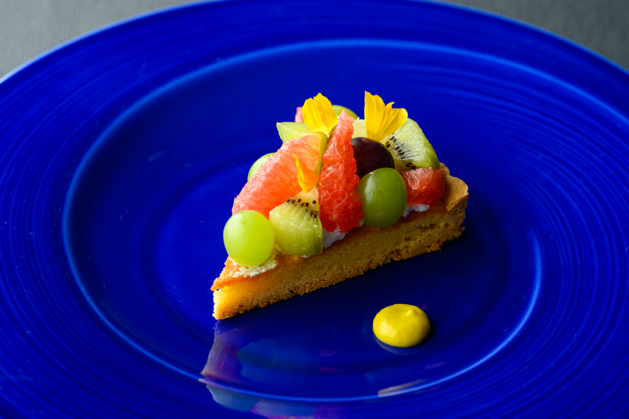 ④4種のチーズで仕立てたミラノ風ピザ ”クアトロフォルマッジ” 生ハムとハーブを添えて