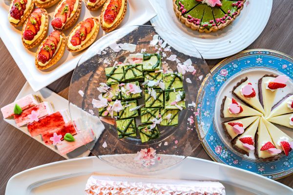 旬の苺を使ったケーキ、タルト、ムースなどホテルメイドのスイーツやランチメニューもお楽しみいただけます。