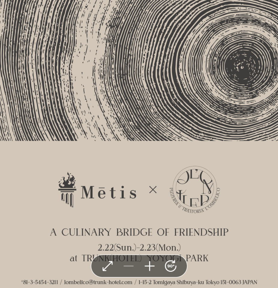 本イベント限定のコースとして、アミューズから前菜、温菜、薪火で仕上げる肉料理を主役としたメインディッシュ、パス タ、デザートまで、“薪”の魅力を多彩に表現した構成でお楽しみいただけます。*限定 20 組