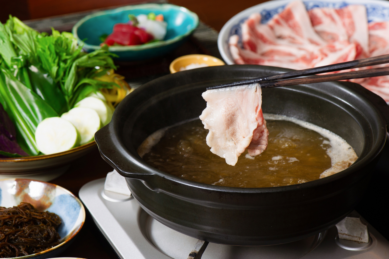 旨みのある豚肉を主役に、季節の先付けや造里、鍋野菜、自家製のタレ、締めの麺、甘味まで揃えた基本のしゃぶしゃぶコース。