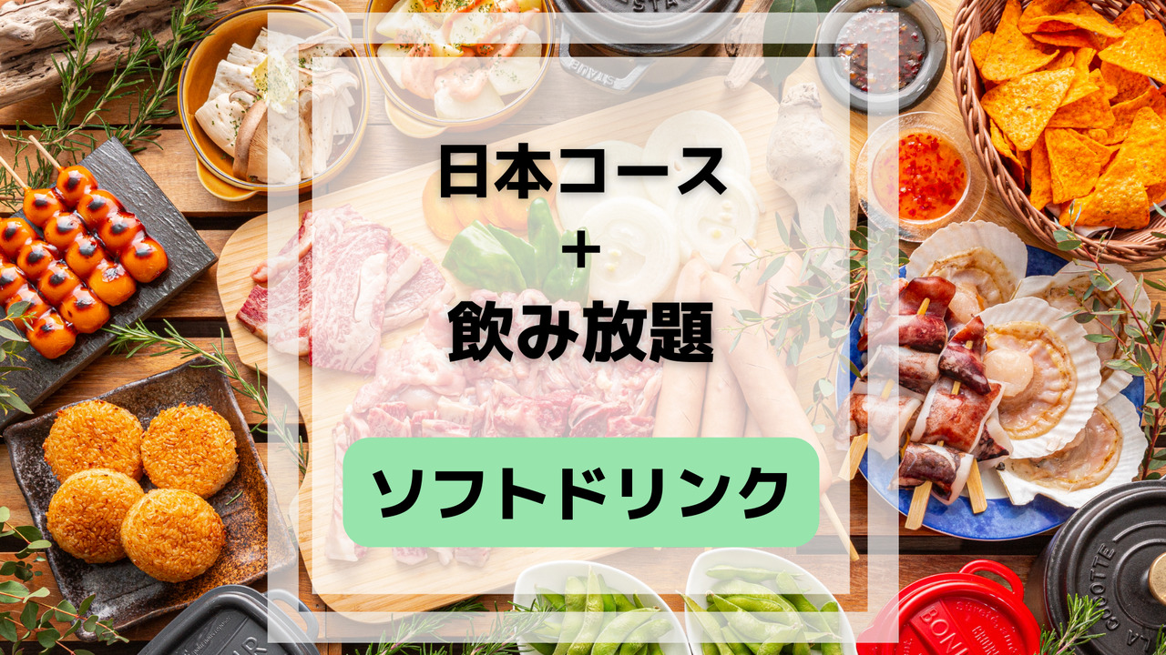 (正)4名でご予約で、日本コース・アルコール飲み放題3名+日本コース・ソフトドリンク1名