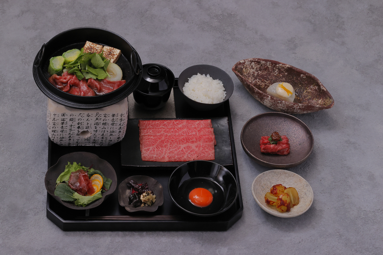 ・すき焼き御膳(黒毛和牛肩ロースすき焼き、新潟産こしひかり、サラダ、赤出汁、香の物)