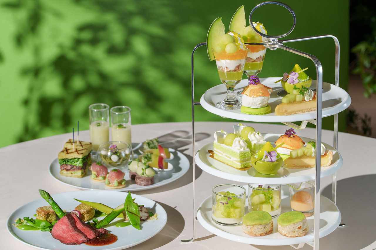 新緑のグリーンをテーマカラーに、高知県産“西島マスクメロン”をふんだんに使ったスイーツやセイボリーをシャンパンとともにお楽しみください。