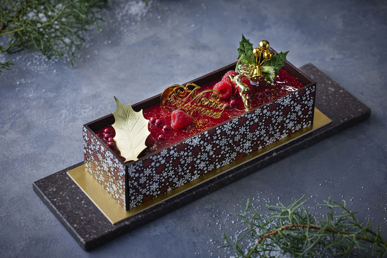 ラズベリー香る、ショコラ生地とムースショコラを層にしたチョコレートケーキ