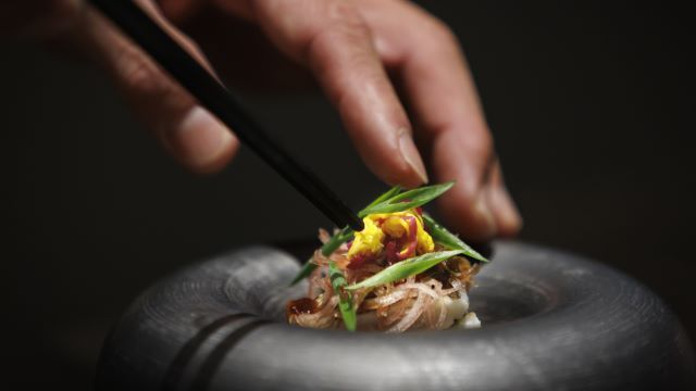 半熟炒り玉子 牛時雨煮 トリュフ掛け