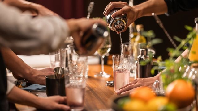ほのかな灯りに導かれ、ひっそり佇むドアを開けば、アンティークとコンテンポラリーがミックスされた、神秘的なカクテルバー。 かつての薬屋にあった百味箪笥をイメージしたバーカウンターの奥では、熟練のバーテンダーが魔法のようにカクテルを調合。そこには季節の食材や地元職人たちの手による自家製シロップ、コーディアルやソーダなど、さまざまな「魔法」の素が秘められています。陶然たる美酒から趣向を凝らしたノンアルコールのモクテルまで、たくさんの魔法物語が紐解かれるのを待っています。