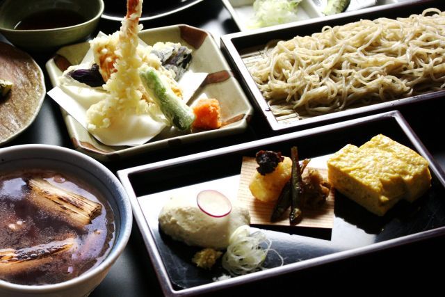 国産玄蕎麦を粗挽きした自家製粉を使用した手打そば。つなぎは最小限の二割程度におさえ、本当のそばの味を堪能できる一品です。また、紀州備長炭で贅沢に焼き上げた奈良大和地鶏や新鮮な卵を使っただし巻き卵、京鴨のコンフィなど、全国の今が旬なうまいものもご用意。豊富なラインナップを誇るオーナーソムリエが厳選したワインや地酒、焼酎などの美酒とともに絶品料理をお楽しみください。