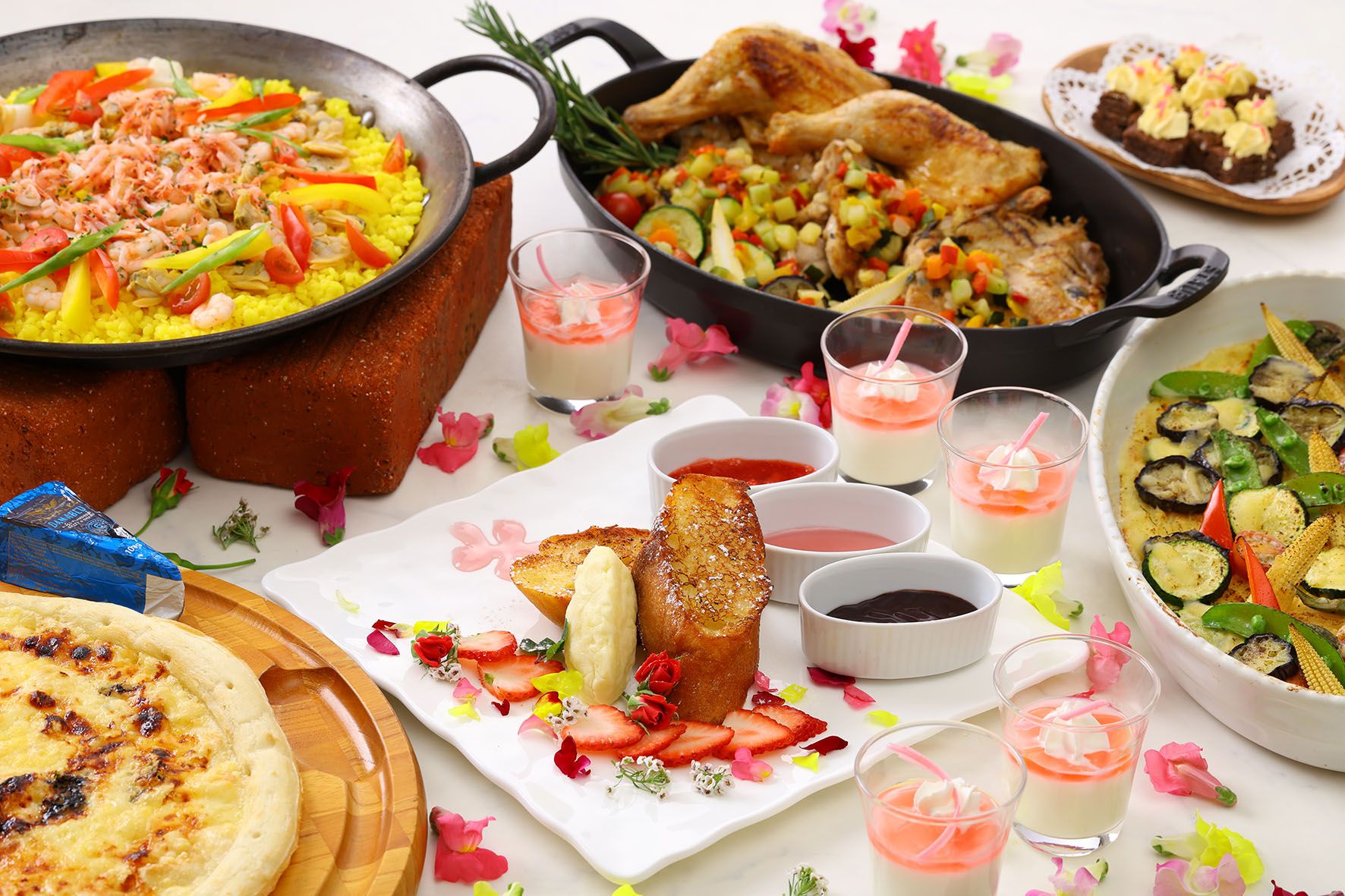 2025.9月~11月 メキシカンフェア ※内容は仕入れ状況により変更になる場合があります。 ビタミンカラーサラダ Salad of the Day サラダリーフ ミニトマト 胡瓜 コーン オニオンスライス 大根ジュリアン ミックスビーンズ 水菜 サラダコンディメント パンプキンシード ローストアーモンド クルトン フライドオニオン ベーコンビッツ EXVオリーブオイル バルサミコ酢 白ワインビネガー ドレッシング シーザーサラダドレッシング Caesar Salad Dressing フレンチドレッシング French Dressing ノンオイル和風ドレッシング Japanese-style Dressing 胡麻ドレシング Sesame Dressing アンティパスト エスカベッシュ Marinated Deep-fried Fish サーモンのセビーチェ サラダ仕立て Marinated Salmon Mix Salad チキンと秋の根菜の冷製 柚子風味 Root Vegetables and Cold Chicken with Yuzu Citron カラフル野菜の自家製ピクルス Pickles ベジタブルスティック&シュリンプのアンチョビクリームDip(土日ディナー限定) Vegetable Steak and Shrimp with Anchovies Sauce ホットディッシュ チキンケサディーヤ Quesadillas アステカプディング Mexican Style Lasagna 白身魚のグリル 金木犀香るヴァンブランソース Grilled White flesh Fish with white wine sauce フライドシュリンプ ケイジャンタルタルソース Deep Fried Shrimp with Cajun Spices Tartar Sauce メキシカンピラフ Mexican style Pilaf ポルチーニクリームのパスタ Pasta with Porcini Mushrooms フライドポテト Fried Potatoes 香草チキンのオーブン焼き ベジタブルバルサミコソース Oven-roasted Chicken with Balsamic Vinegar Sauce ロモ アドバード Marinated grilled pork. カレー&トッピング(ガーリック・福神漬け・らっきょう・レーズン・ココナッツ) Japanese Curry