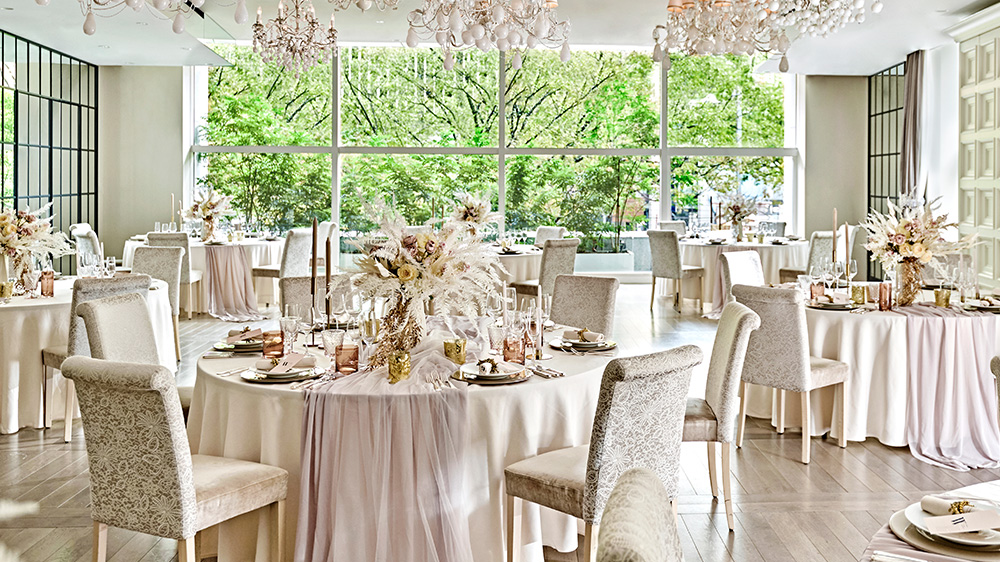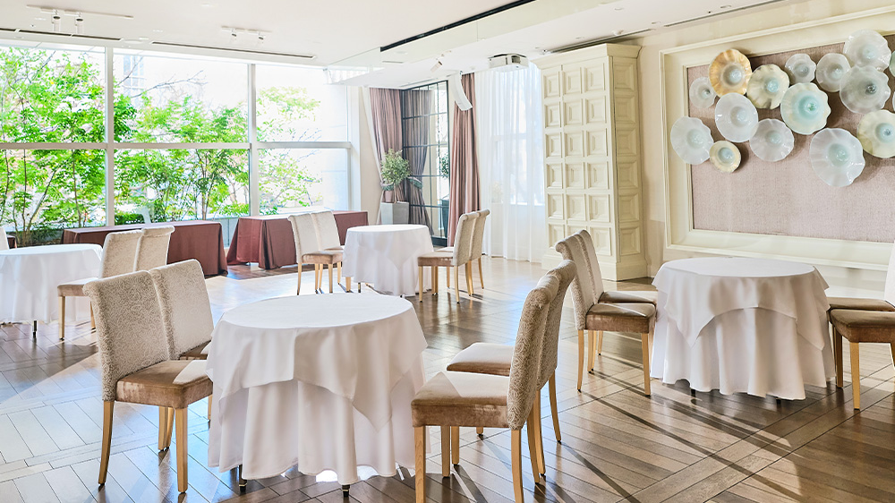 広々とした店内で季節ごとに変わるテーマに沿ったフォトジェニックなブッフェは、何度足を運んでも楽しめる空間。表参道の街並みを眺めながらの非日常空間で、心もお腹も幸せいっぱいなひと時をお過ごしください。可愛らしく装飾されたブッフェボードは、ブッフェ開始前の15分間写真撮影が可能です。前菜とメインディッシュはスタッフによるテーブルサービスでのご提供になりますので、密にならずお席でゆっくりお過ごし頂けます。季節のフルーツなどを取り入れた、色とりどりのスイーツもお楽しみください。