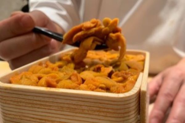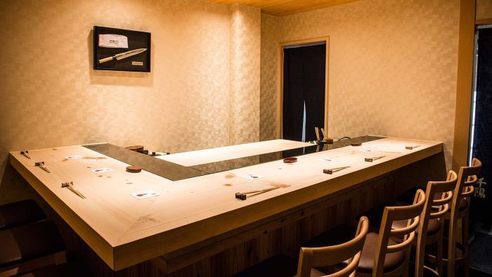 隠れ処と呼ぶにふさわしい総席数13席の特別な空間。席はカウンター席のみとなっており、職人との会話を楽しみながらこだわりの江戸前寿司をご賞味いただけます。魚介類が新鮮なうちに「煮る」、「締める」、「漬け込む」といった江戸前鮨の伝統的な「仕事」を施した、こだわりの寿司の数々を前菜やお造りと共にコース料理でご提供致します。丁寧な「仕事」により素材の旨味が最大限に引き出された至高の寿司をお楽しみください。