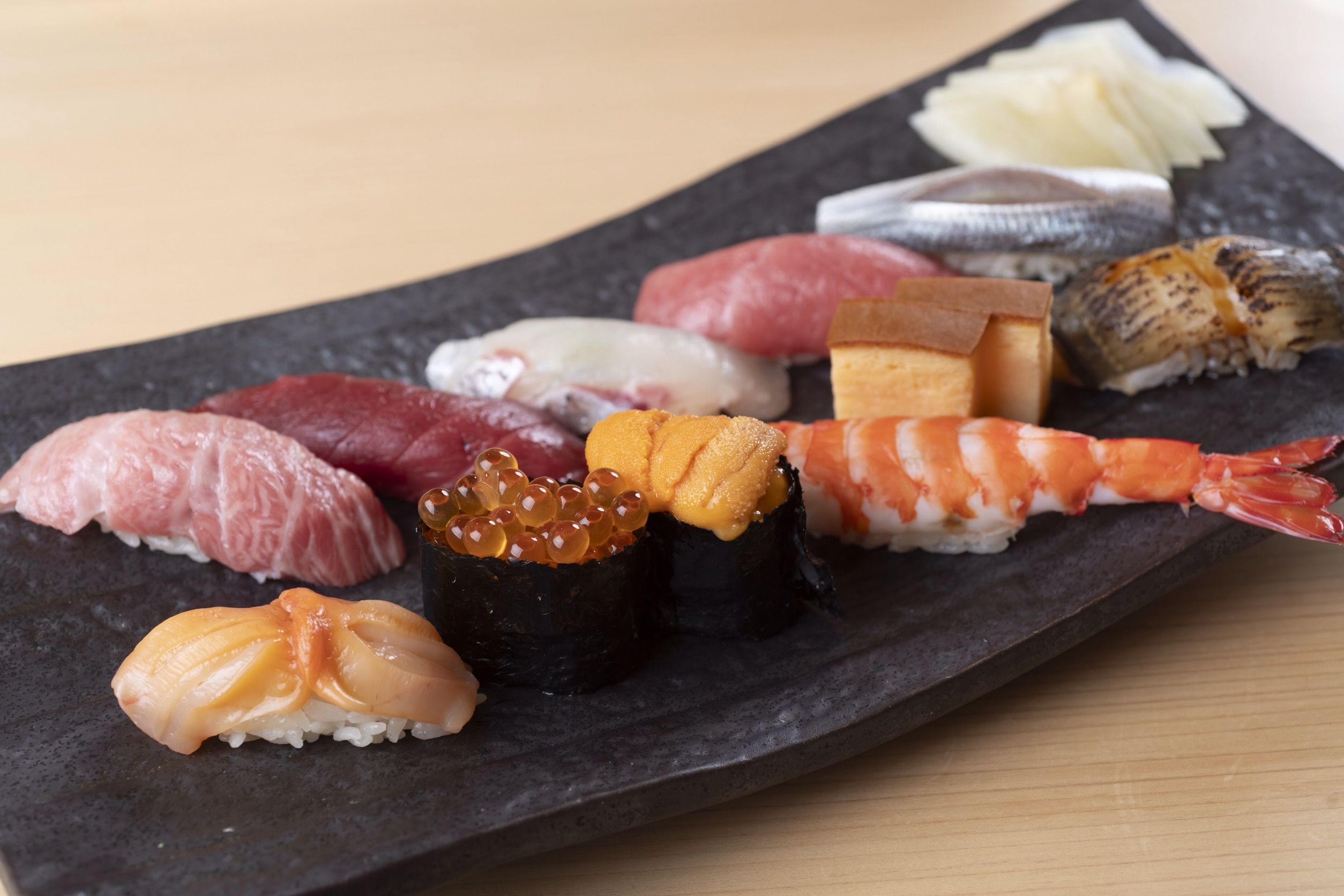 銀座から歩いてほどなくのところにあるビルの一角。店内に入ると、そこには木のぬくもりが感じられるカウンターと都会の喧騒を忘れそうな落ち着いた空間があります。季節に合わせて厳選した旬の素材を、熟練の寿司職人が心をこめて握っています。コース料理はディナーだけでなく、ランチタイムにもご用意がございます。お子様向けメニューもご用意しておりますので、ご家族連れでもお楽しみいただけます。