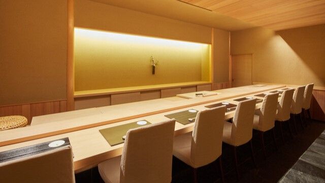 提供のタイミングに合わせて羽釜で炊き上げた酢飯や北海道産の雲丹や蟹といった鮨種を、洗練された空間で心ゆくまで味わえる。朴訥と鮨を握る松橋氏は、寡黙ながらも鮨文化を伝承することに熱心で、語学力を活かして海外からの客をもてなすことも。きらきらとネオンが輝くすすき野の大通りから一本入った小道で、控えめながらも凛と佇む表札がこの店のすべてを象徴している。本気で鮨に向き合いたい人が行くべき一軒だ。