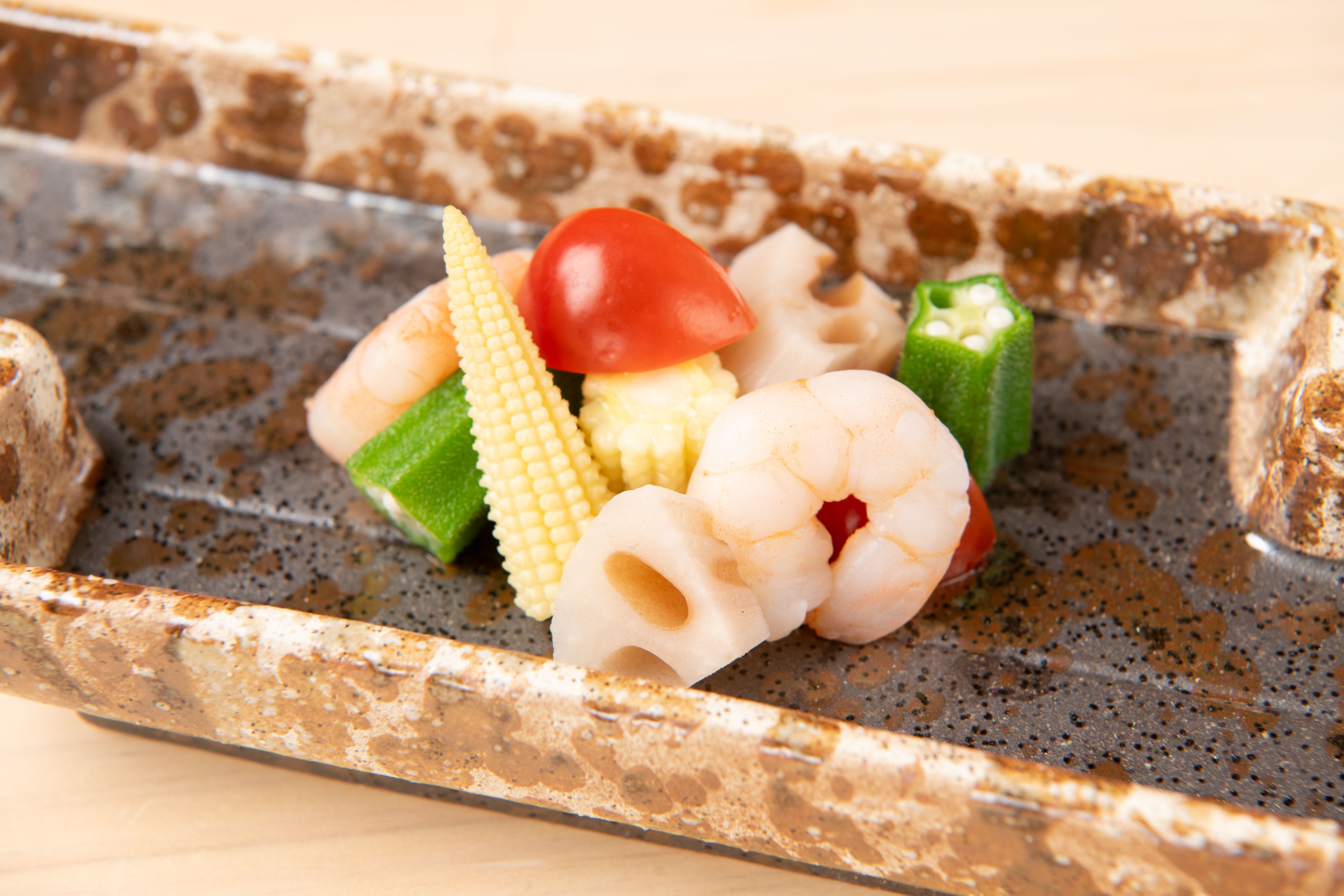 四季折々の旬の食材を用い、特別なひとときをお過ごしいただけるよう、当店ではカウンター席のみでご案内しております。豊洲市場より毎朝仕入れる厳選食材を、職人が心を込めて丁寧に調理。赤酢のシャリで握るこだわりの一貫と、料理に合う各種お酒を取り揃え、記念日やご接待など大切な日にふさわしいひとときをご提供いたします。