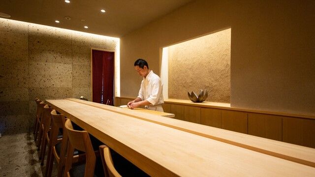 すっきりとシンプルな白い暖簾をくぐり店内に足を踏み入れると、但馬檜のカウンターがお出迎え。ゆったりとした空間で、大切な方と有意義な時間をお過ごしいただけます。すし うえだは、本格的なお寿司をご堪能いただける店です。厨房に立つのは卓越した技術と豊富な経験を持つ腕利きの職人。提供するメニューは、鮪やサーモン、穴子などの定番からタマネギの茶碗蒸し、アワビの蒸焼きなど変わり種まで豊富にございます。アルコールを楽しみたい方には、ビールや日本酒、サワーなどもご用意しています。
