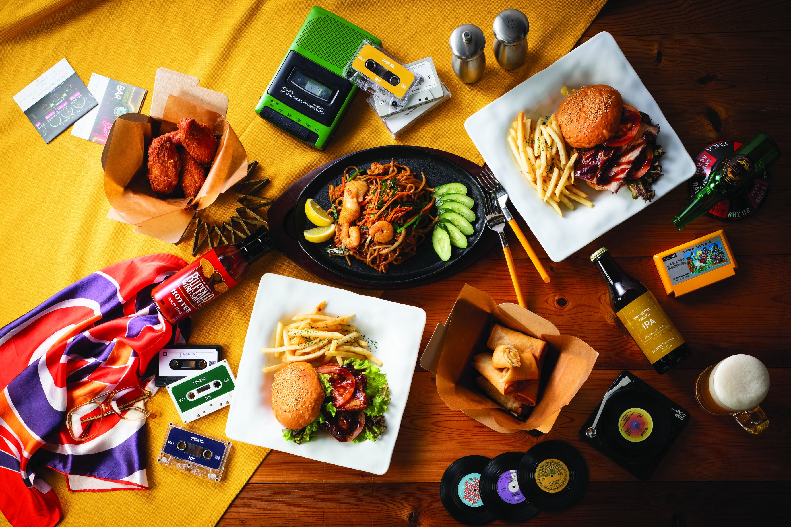 昭和レトロやノスタルジックなアメリカンビンテージまで、思わず懐かしくなってしまうインテリアが揃う空間が広がる店内にはレトロゲームやDJブースなどを設置。店内奥の壁面にはレストランの像微となるウォールアートが描かれ、大阪の活気に満ちたエネルギーと古き良き時代が融合した背景にたたずむ着物姿の女性の姿が、まるで時代を超えて抜け出したような、あるいは未来からやって来たような印象的な雰囲気を漂わせています。