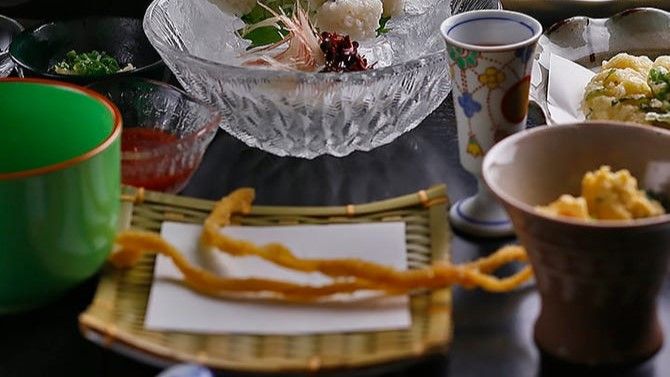 冬期には東シナ海で釣りあげられた4kg~8kgのふぐを使ったてっちり、 夏期には鱧料理をご用意してお待ちしております。 1階、2階に個室が全6室あり、少人数様からご案内いたします。 団体様のご会食には、最大24名様までのフロア貸切もご利用いただけます。