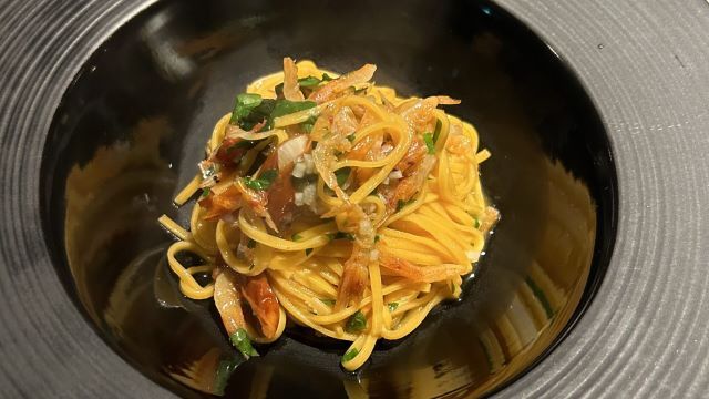 店内は隠れ家のような静かなたたずまいが広がっています。「今、最高の食材で美しいイタリアンを」をコンセプトに、食材の仕入れと仕込みに拘りを持っています。旬の魚介類やお肉を使った前菜から始まり、手打ちパスタには鴨と下仁田ネギを使用。魚料理では、鮮魚のムニエルをお楽しみください。また肉料理には、和牛の赤ワイン煮込みなどをどうぞ。料理の最後には、甘さを抑えた大人の雰囲気が漂うドルチェをご用意しています。
