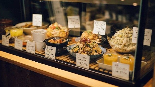にぎやかな商店街の路地裏に静かにたたずむお惣菜店。落ち着いた色合いのインテリアは、ノスタルジックな風情を感じさせます。店内の一角にある「食の郵便局コーナー」では、生産者と消費者の想いを手紙でつなげます。お惣菜で使われる食材は、全国の生産者から直接届いたものを中心に旬のものを使用。テイクアウトのお惣菜のほかにも、定食や手紙をモチーフとしたお弁当をご用意。お子様からお年寄りまで食べられる優しい味わいや、お弁当箱を開けたときの喜びなど、食で届く「お便り」をお楽しみください。