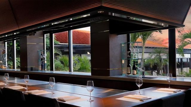 ホテル前のビーチに臨むプールサイドに位置し、モダンで温かなインテリアの店内には、テラスビューの長いカウンター席やグループで楽しめるテーブル席を揃えます。 料理は宮古島で採れた旬の食材を、極上のメニューに仕上げる鉄板料理の世界。絶妙な火加減で、鉄板上の食材たちが踊る〈食のエンターテインメント〉が目の前で繰り広げられます。