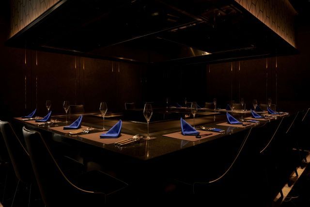 厳選された静岡の食材の数々と職人の巧みな技術が織りなす時間は至福のひと時。鉄板を囲むように設置されたお席はどの角度からでもライブパフォーマンスは必見!モダンでシックな空間で特別な時間をお過ごしくださいませ。
