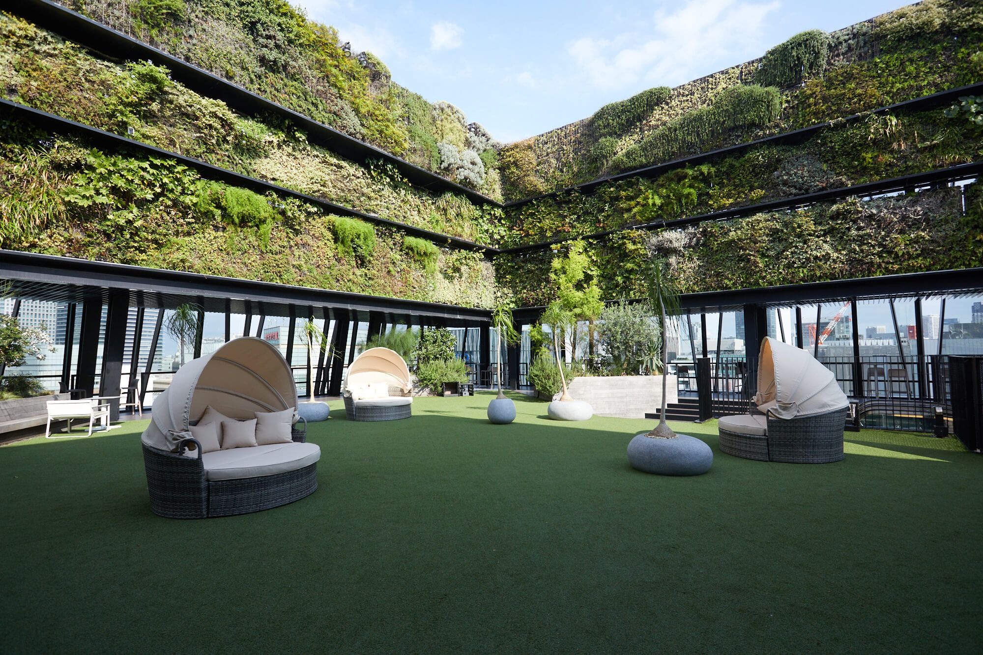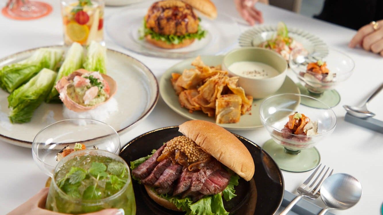 スタイリッシュで解放感あふれるルーフトップにある広々とした店内には、デザイン性の高いソファー席とテーブル席を巧みにレイアウト。夜になれば、窓際のテーブル席から、都心部ならではの煌びやかな夜景をお楽しみいただけます。