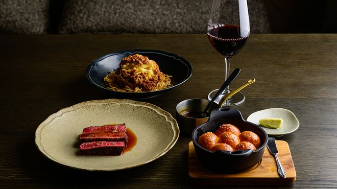 店内はオシャレな雰囲気の中に、落ち着いた時間が流れます。時間帯によってメニューが異なり、朝はゆっくりアメリカンブレックファーストを、お昼はカジュアルなパスタランチから少し贅沢なランチコースまで味わうことができます。 ディナーは、食材の旨味を最大限に引き出した薪火料理を豊富に揃え、食材によって火加減を調整することで「食材の最も花開く瞬間」をご提供しています。食事に合わせてカクテルやソムリエセレクトのワインもご堪能ください。