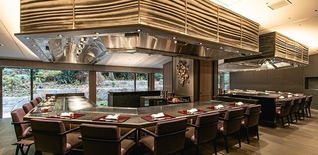 一歩足を踏み入れれば、シンプルで落ち着いた色合いの空間が広がっています。ひとつひとつの席を広く設けた空間で、ゆったりとおくつろぎください。 「鉄板焼しろかね」では、独創的な発想の鮨を、鮨白金さえきでは濃厚でこだわりの深い肉の鉄板焼きを目の前で、そして「CHEF'S ROOM」では旬の食材をふんだんに使用した季節に合わせた四川料理やフランス料理をお楽しみいただけます。いずれの店舗でも、素材からこだわり、ライブ感あふれる時間の提供にこだわっています。