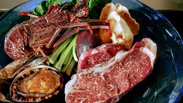 宮古島前浜ビーチを望む4つ星ホテル内にある店内へ足を踏み入れると、そこはゆったりとした贅沢な空間。カウンター席の目の前でシェフの鮮やかな手捌きを眺めながら、宮古牛や国産伊勢海老などの鉄板焼きを堪能できます。メニューには、沖縄県産もとぶ牛サーロインなどの美味しい肉料理をご用意。季節の焼き野菜や蝦夷アワビなどのメニューもございます。お酒が好きな方は、ヤム芋焼酎などのドリンクとのペアリングもお楽しみください。