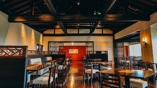 和風ダイニング・寿司・鉄板焼きの3つのゾーンからなるホテル内のレストランです。ダイニングでは沖縄郷土料理を中心に、寿司では沖縄の魚グルクンや宮古牛の握りなど、沖縄らしさ満点のメニューをご用意しております。お酒は泡盛の他に、宮古島名産のヤム芋で作られた焼酎もお楽しみいただけます。店の入口では一対のシーサーがお出迎え。店内は広々として窓も大きく、目の前には宮古島の雄大な大自然が広がり景観も抜群です。