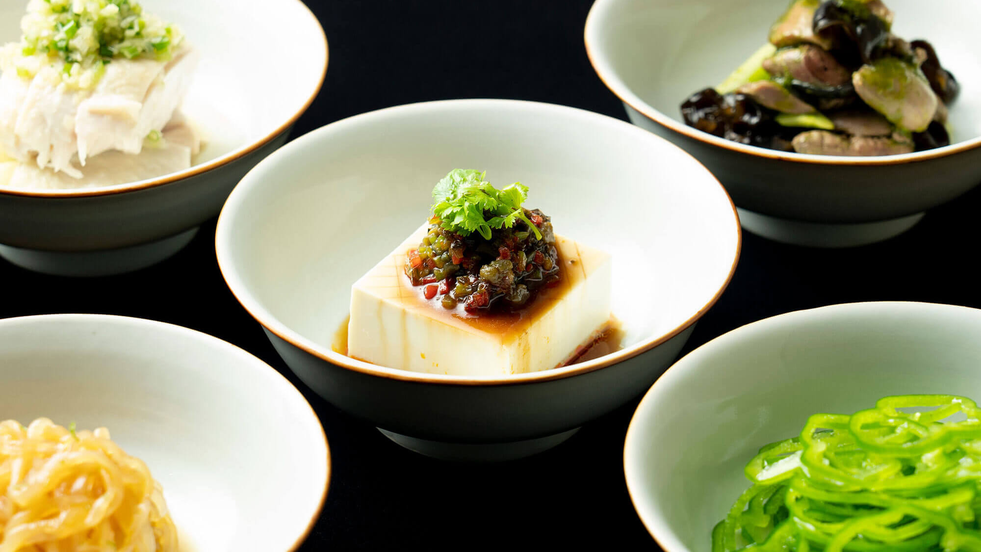 シンプルでモダンな店内は、さりげない上質を感じられる空間です。お一人様でもふらっと立ち寄りやすいカウンター席をはじめ、プライベート空間を保てる個室もございます。「普通の中華屋さん」をコンセプトに、どこか懐かしさを感じながら、上質な時間をお過ごしいただけます。料理は親しみのあるアラカルトメニューから、本格的なコース料理まで豊富にご用意。料理に⾒合ったワインや日本酒などもバリエーション豊かに取り揃えております。
